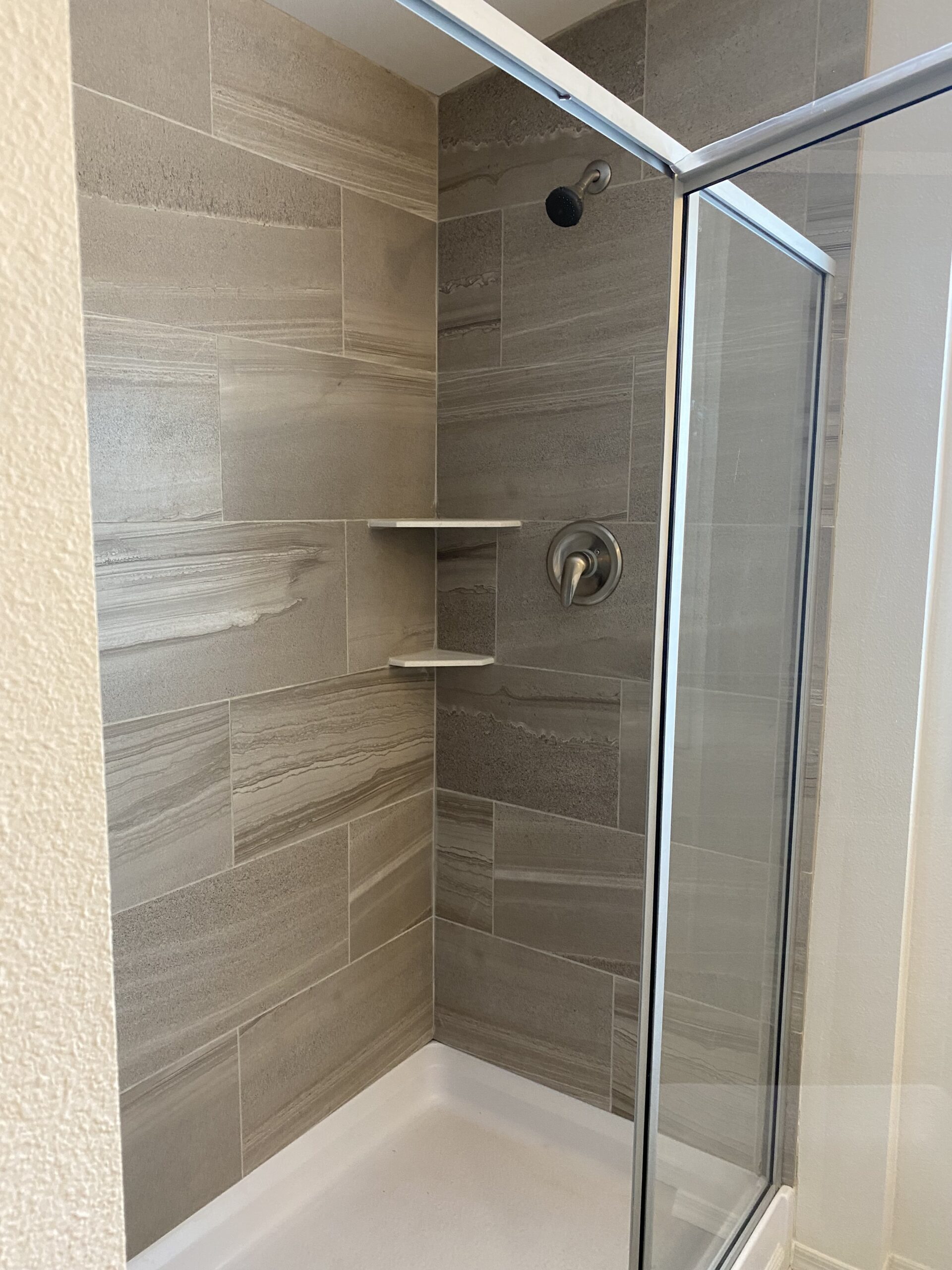 - Master bath tile shower.