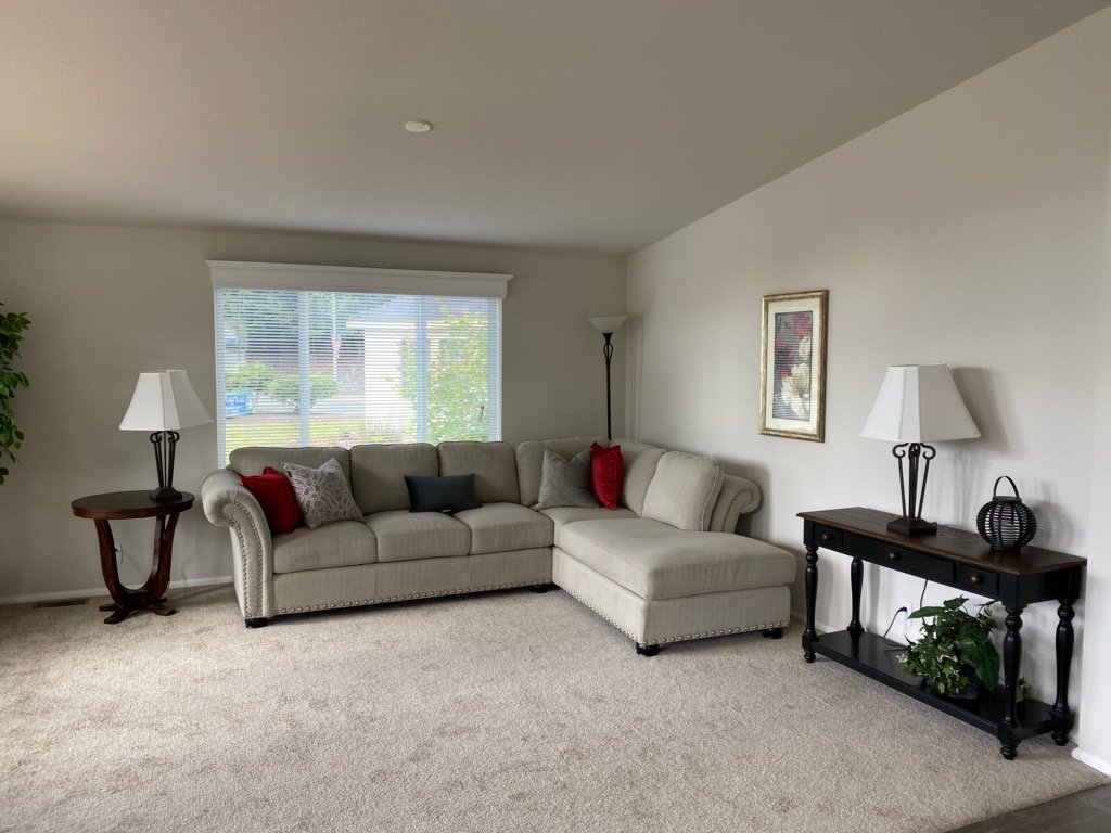 A bright and airy home with kitchen that boasts solid hardwood cabinets , name brand appliances and pantry. This open concept home with great windows feels more spacious than it's square footage.